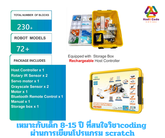 SMART ROBOT หุ่นยนต์ Coding kit ตัวต่อหุ่นยนต์โรบอท หุ่นยนต์บังคับ ผ่านมือถือแท็บเล็ต STEAM Educational Programmable Robot Kit ใน 1 ชุด ประกอบด้วย IR Sensor 1 ตัว Light Sensor 1 ตัว ชุดคอนโทรลพร้อมมอเตอร์ 1 ตัว